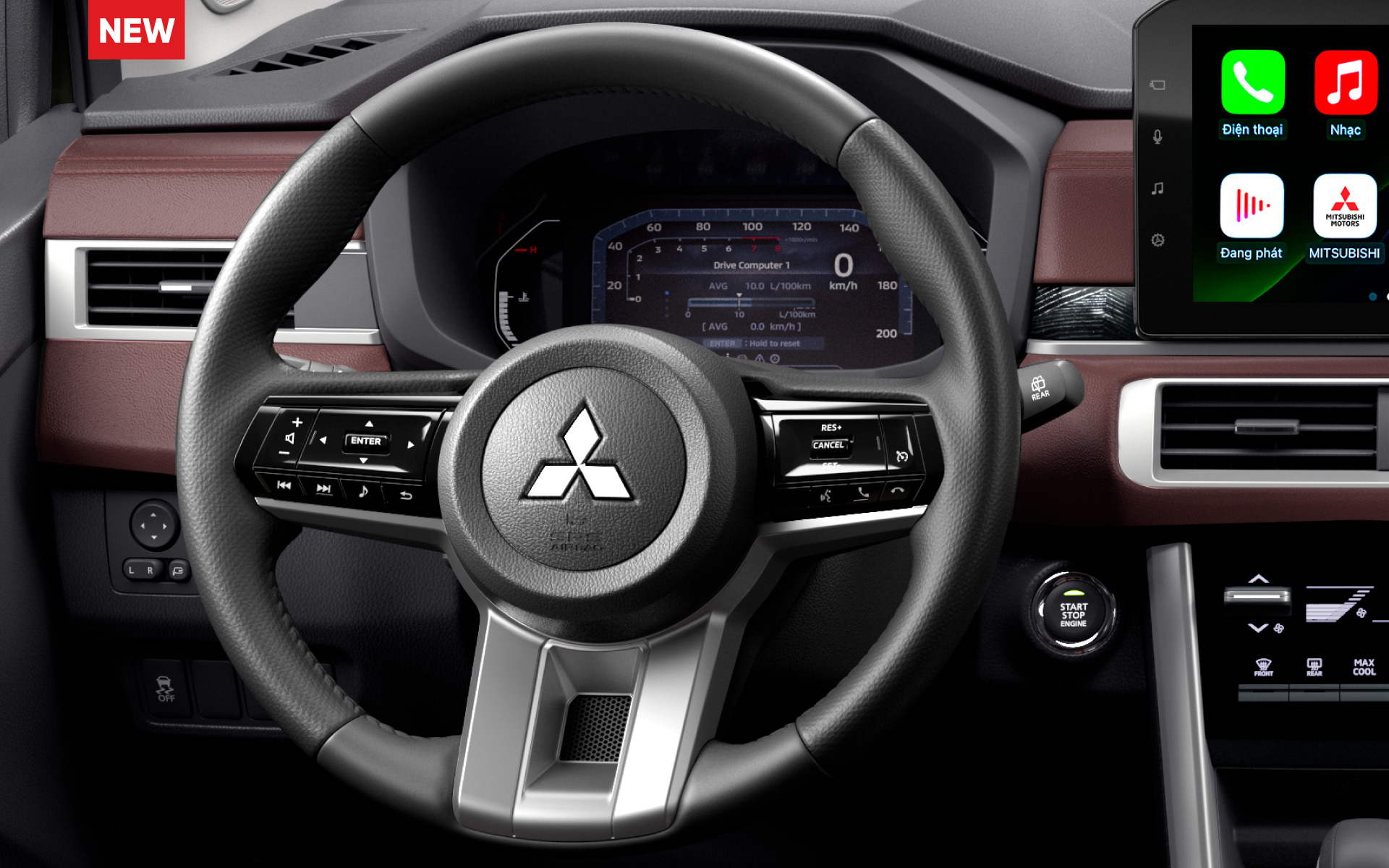 Thiết kế vô lăng 3 chấu bọc da sang trọng, tích hợp nhiều phím đa chức năng